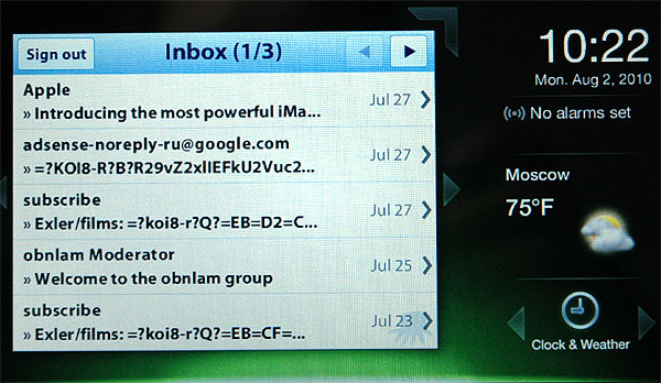 Аналогичным образом бесполезен виджет, который позволяет просматривать заголовки и письма в Gmail, - он тоже не поддерживает кириллицу.