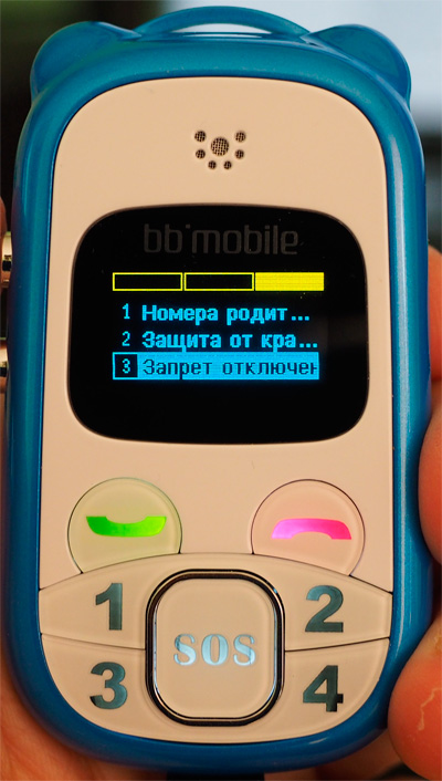 Первым делом телефон надо настроить. В разделе "Безопасность" вводятся два номера родителей.