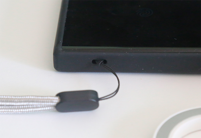 По поводу ланьярда - петельки на запястье для страховки смартфона. Я сначала искал держатель для ланьярда на самом устройстве, но потом почитал инструкцию - они ясно пишут, что ланьярд - для чехла смартфона, а не держателя. Потому что главная ценность - это смартфон, его страхует ланьярд. Так что его и нужно крепить к чехлу смартфона, тем более что очень многие чехлы имеют отверстия для крепления ланьярда, как у моего чехла.