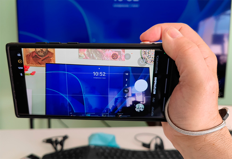 Ну и все, а дальше можно пользоваться смартфоном как фотоаппаратом: держать его одной рукой за удобный хват держателя, указательным пальцем нажимать на кнопку съемки, делать приближение и удаление, переключать камеры и переключать режимы съемки.