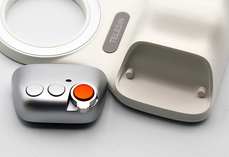 Блок - магнитный и съемный: его можно снять, приложив небольшое усилие. Так как управление камерой в смартфоне делается по Bluetooth, вы можете этот блок также использовать и как пульт дистанционного управления - он будет срабатывать на дальности до 10 метров.