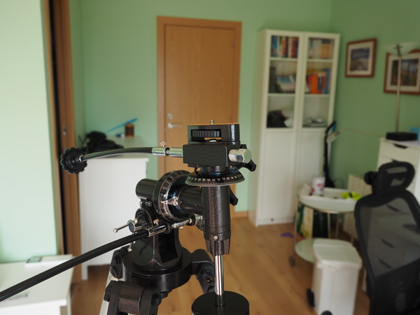 Устанавливаем монтировку. Как следует из документации, это экваториальная монтировка немецкого типа EQ-2. Такой тип монтировки удобен для наземного наблюдения за небесными объектами. Если точно выставить ось прямого восхождения, то можно скомпенсировать вращение земного шара вращением всего одной ручки. А вот для наблюдения за наземными объектами такой тип монтировки неудобен.