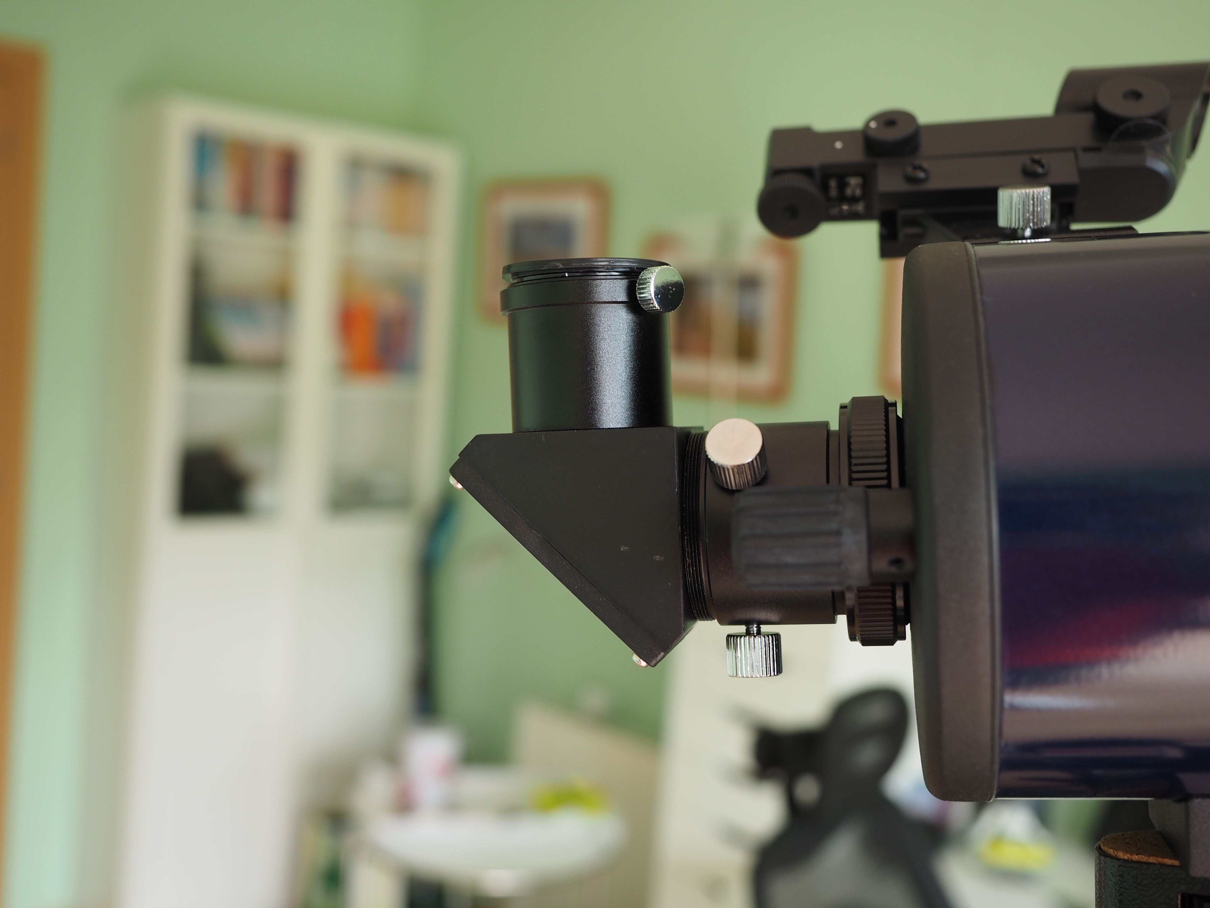 Устанавливаем диагональное зеркало - оно нужно для удобства наблюдений за небом. Для наблюдения за наземными объектами зеркало убирается.