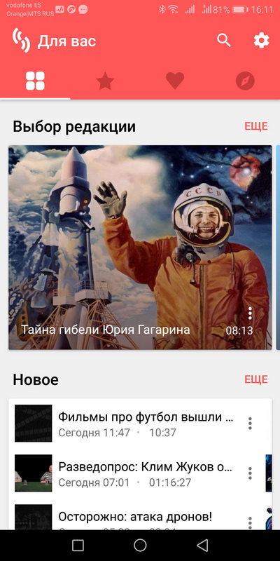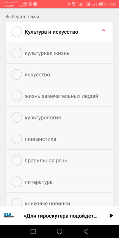 Отметили - далее попадаете на главную страницу SoundStream: там формируется лента из недавних передач на основе ваших предпочтений. Также там есть раздел "Выбор редакции", где по горизонтали можно скроллировать предлагаемые редакцией выпуски.