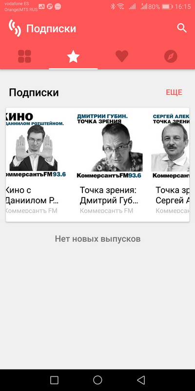 Таким способом подписываетесь на интересующие вас передачи - и они все появятся в разделе "Подписки", под ними появляются новые выпуски.