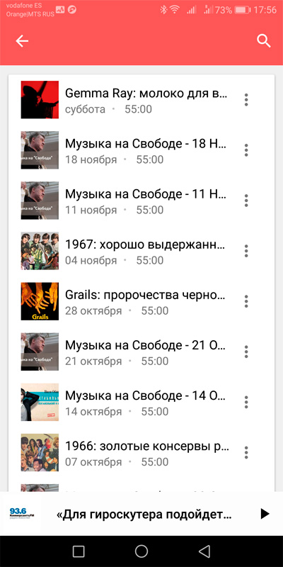 Открываете скачанное, получаете соответствующий список передач, нажимаете на нужную - попадаете в тот же плеер, только передача будет воспроизводиться уже с вашего смартфона. В этом списке также будет отмечаться, сколько именно минут вы уже прослушали той или иной передачи. После полного прослушивания одним щелчком передачу можно удалить - чтобы не занимала память смартфона.