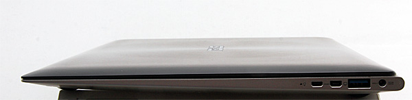 По макэйровской традиции, ставшей канонической для большинства ультрабуков, устройство заметно утончается к переднему торцу. На переднем торце его толщина составляет всего 3 мм.