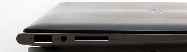 На левом торце - USB 2.0, универсальный выход на наушники-микрофон (гарнитура), кардридер.