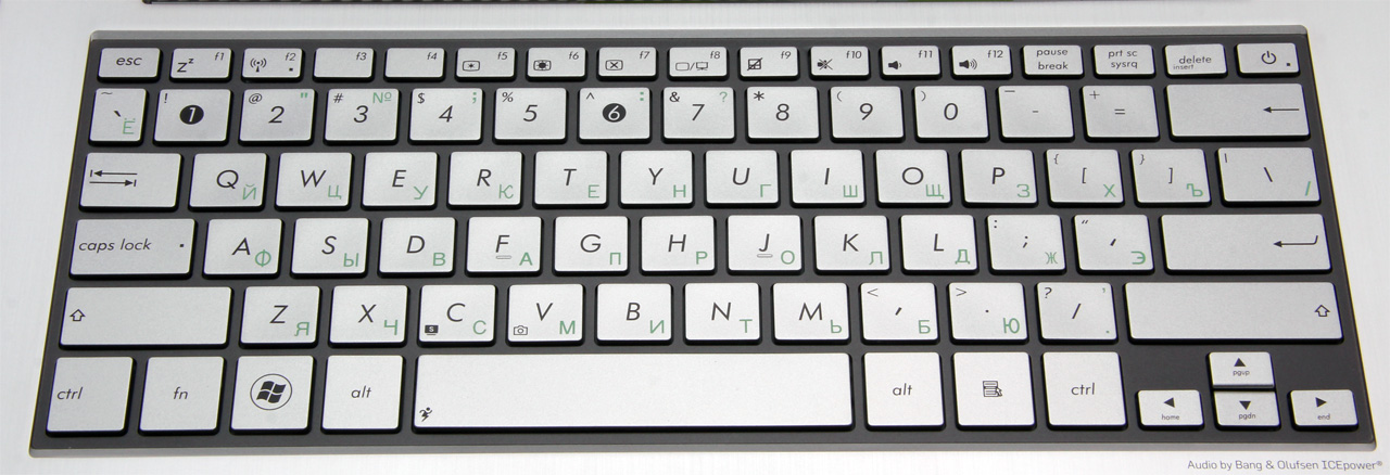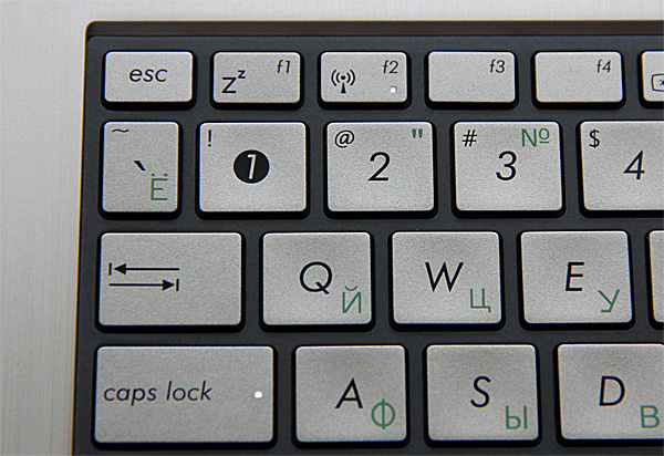 С индикаторами тут вопрос решен элегантным способом. Индикаторы соответствующих клавиш располагаются прямо на них - на Power, клавише беспроводной сети и CapsLock. Еще бы куда-нибудь воткнули индикатор работы диска - мое счастье было бы безоблачным. Но похоже, что для производителей ультрабуков это принципиальный момент - нигде нет индикатора работы жесткого диска, непонятно почему.