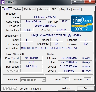 Процессор: Intel Core i7-2677M (1,8 ГГц)