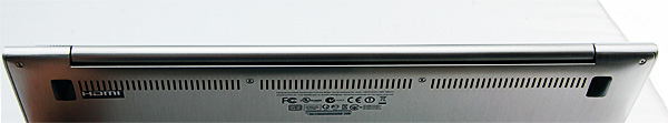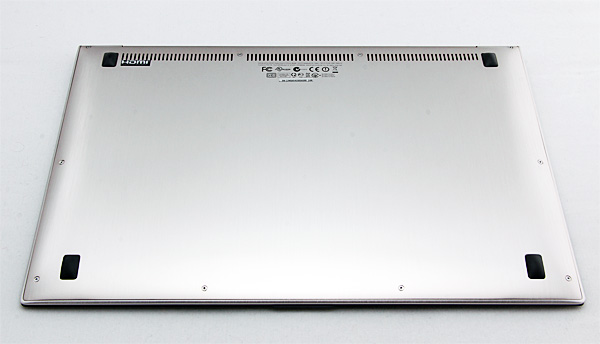 Нижняя часть сделана из цельного куска металла, что должно способствовать лучшему охлаждению системы. Ближе к креплению дисплея расположены тепловыводящие решетки. Больше никаких других отверстий в нижней крышке нет.