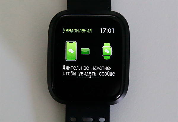 Далее - уведомления. Длинное нажатие - просмотр сообщений, листать - коротким нажатием.