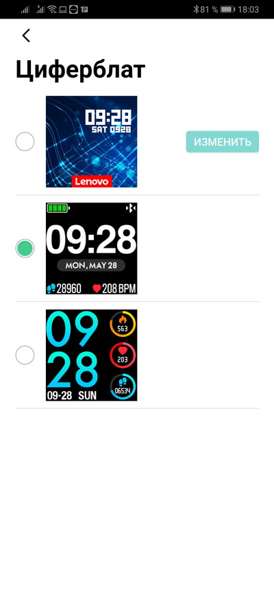 Циферблат - один из трех предустановленных. Циферблаты меняются только со смартфона. Качество изображения на дисплее, как видите, очень хорошее.