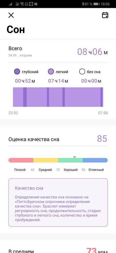Подробности о сне. Измеряют, кстати, прилично - очень похоже на правду. Но небольшие пробуждения (минут на пять) не фиксируют.