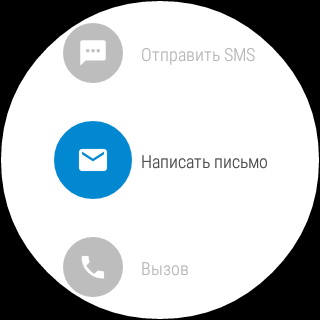 При нажатии на любой контакт ему предлагается отправить SMS, написать письмо по электронной почте или позвонить.
