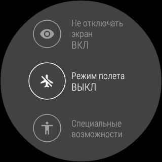 Второй экран - включение "театрального" режима, при котором в "спящем" варианте экран полностью отключается. (Я этот режим использую ночью, если не снимаю часы с руки.)