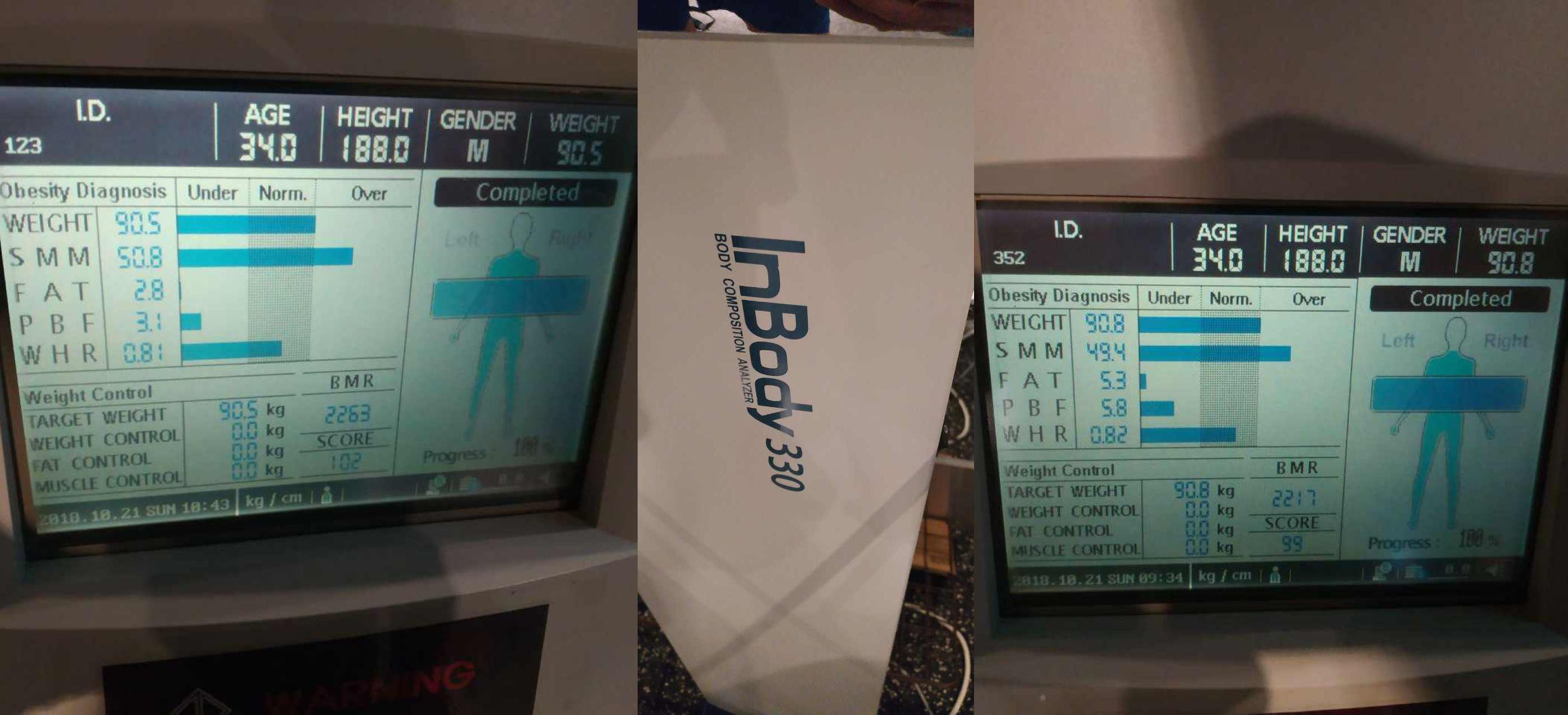 Результаты взвешиваний и оценок тела иногда достаточно сильно отличаются друг от друга,хотя взвешиваюсь утром, у меня метаболический возраст больше на 2 года (( - видимо совсем фиговый я проводник тока ))