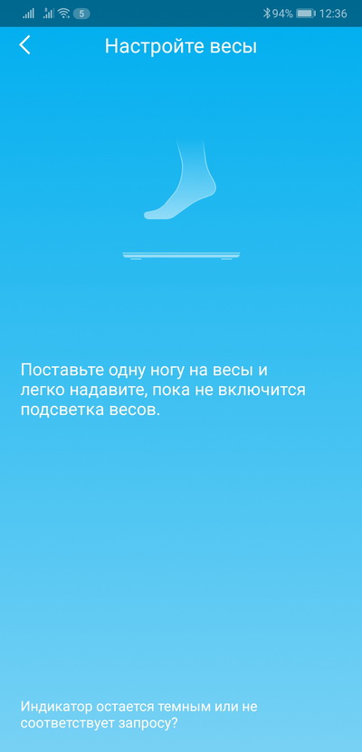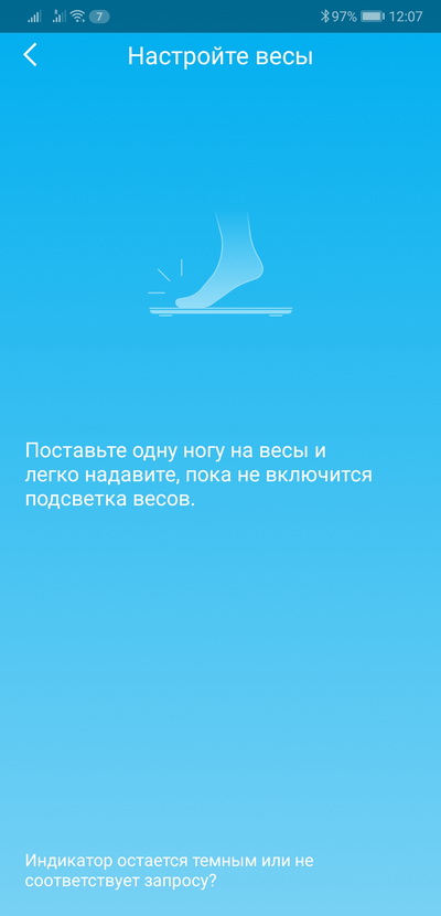 После подключения весы обращают ваше внимание на то, что взвешиваться нужно обязательно без носков, иначе не все параметры будут правильно измерены. А ведь без носков-то зимой - холодно. Впрочем, ладно, переживем.