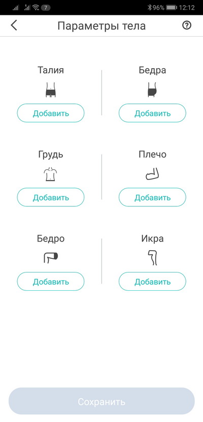 Для большей точности аналитики можно время от времени проводить замеры параметров вашего тела - это все будет учитываться. Но, впрочем, программа спокойно обходится и без этого, потому что, если честно, у меня есть поинтереснее занятия, чем еженедельно измерять различные элементы моего тела. Нет, я понимаю, что потом можно будет с другими пользователями меряться - ну, например, икрами, - но тем не менее.