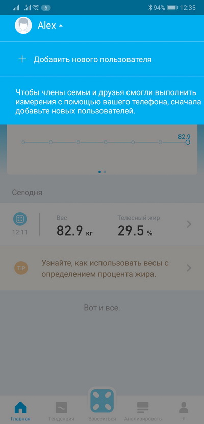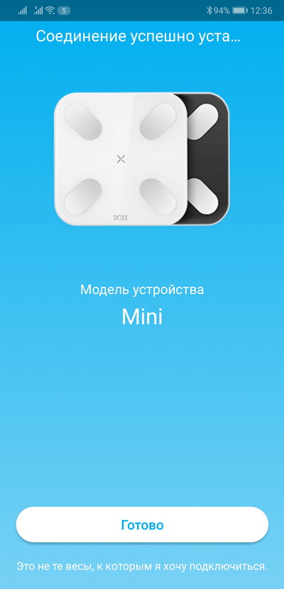 С моделью Picooc Mini все работало точно так же, за исключением того, что перед взвешиванием требовалось открыть приложение и нажать кнопку "Взвеситься" - чтобы данные попали в приложение и в облако.