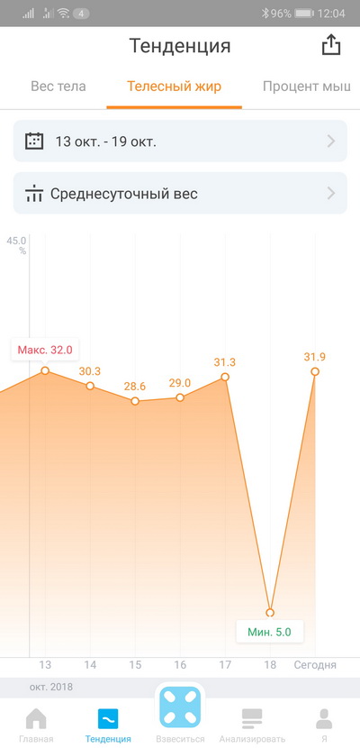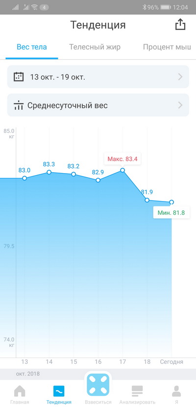 С моделью Picooc S3 все работало как часы. В смысле, как весы. Только надо было не забывать взвешиваться, вставая на весы голыми ногами без носков, иначе некоторые параметры неправильно определялись. На смартфон и в облако все передавалось, по графикам можно было отслеживать и изменение веса, и изменения остальных параметров.