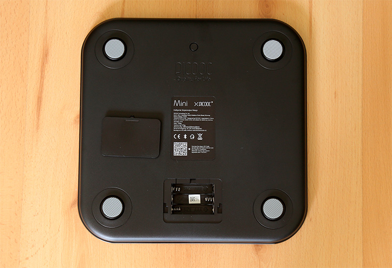Батарейки вставляются в соответствующий отсек на нижней части весов, снизу есть четыре резиновые ножки, благодаря которым весы устойчиво стоят на полу.