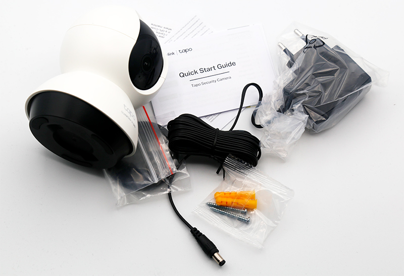 В комплекте: камера, адаптер питания, руководство пользователя, крепежная пластина для стены, крепежные винты. С кабелем питания не поскупились, длина кабеля - аж 3 метра.