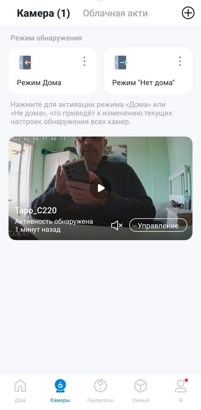 Для видеонаблюдения можно по-разному настраивать режимы "Дома" и "Нет дома".