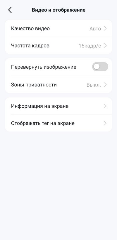 Видео и отображение. При задании качества видео "Авто", камера сама определяет, с каким качеством снимать - в зависимости от устойчивости канала. И вариантов качества предусмотрено только два: 2K QHD - для устойчивого канала, 360p - для неустойчивого канала. Настройки отображения информации на экране.