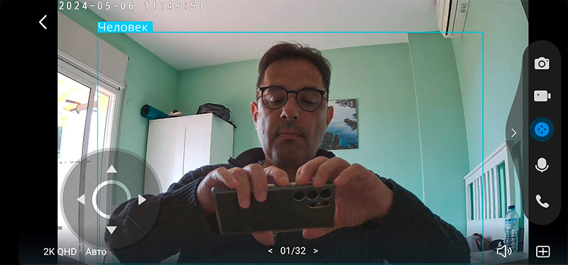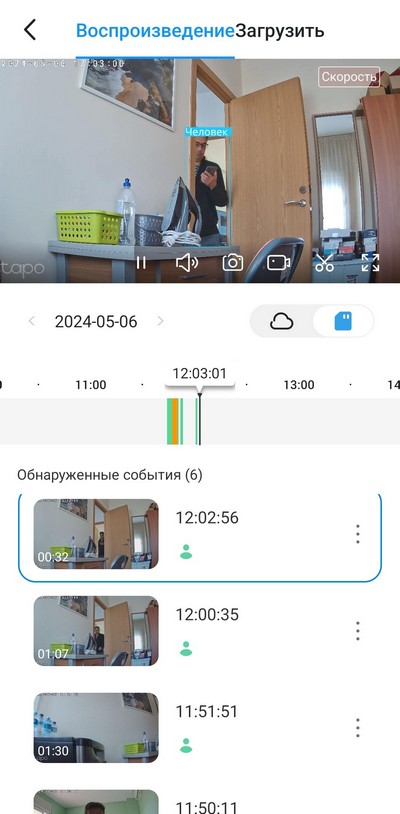 Распознавание активностей производится совершенно четко. В данном случае как только я появляюсь в поле зрения камеры, она тут же фиксирует активность, определяет тип объекта, делает скриншот и записывает видеоролик. При этом высылается уведомление (если они включены).