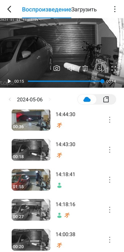 Камера подключилась сразу же, никаких проблем с настройками ее не было, она отлично работала в тестовом режиме, а теперь занимается видеонаблюдением в гараже в штатном режиме. Она хорошо снимает в темноте, также устойчиво работает в условиях затрудненного приема сигнала WiFi (все никак не соберусь в кладовку над гаражом ретранслятор поставить, чтобы сигнал был более устойчивым). И я даже, наверное, куплю базовую подписку на облачный сервис - пускай все хранит в облаке неделю, а то мало ли что.