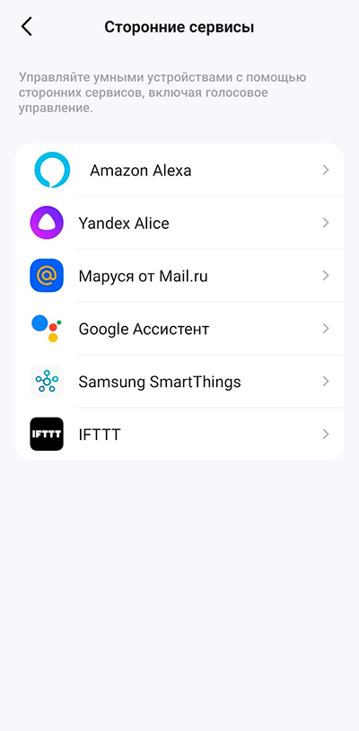 Камера также поддерживает голосовое управление через различные голосовые сервисы, которые можно подключать. Вот их набор.