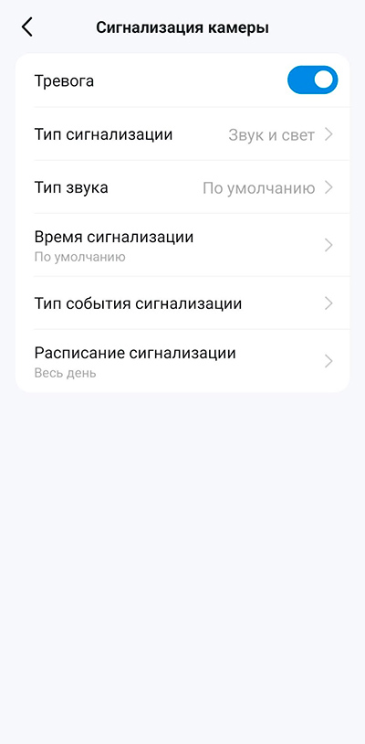 Также у камеры есть встроенный режим сигнализации: при обнаружении какой-то (или из заранее заданных) активности, камера может давать световой и звуковой сигнал. И это все можно задавать по времени и по расписанию.