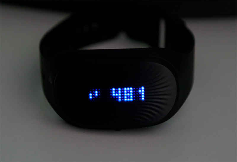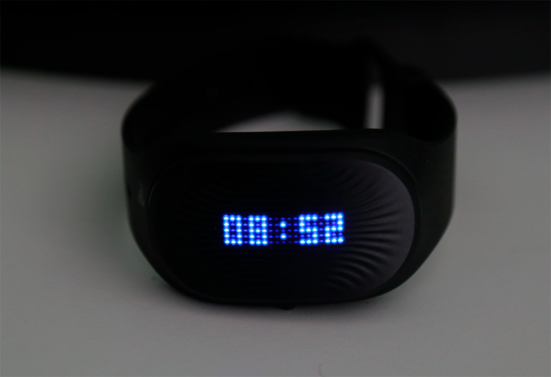 Честно говоря, я был слегка в шоке, когда увидел, как именно этот браслет демонстрирует информацию на своем "экране". Он это делает с помощью крупных светодиодов голубого цвета, которые сразу вызывают в памяти табло Курского вокзала в Москве где-то годов эдак семидесятых-восьмидесятых. Плюс это еще выводится вдоль верхней крышки, так что даже такая вроде бы простая вещь, как определение времени, здесь проходит очень небанально. Тем более что и быстро разобрать-то, что там действительно показывают эти огонечки, достаточно непросто.