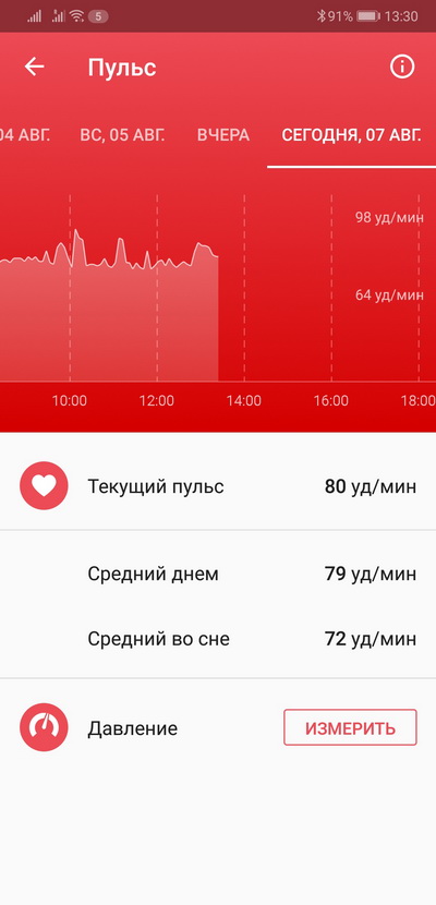 Пульс измеряет вполне качественно и строит график. Также типа как может измерить давление, но честно предупреждает, что результат будет неточный.