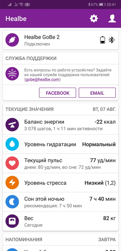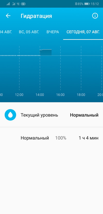 Качество оценки уровня гидратации я толком проверить не смог: я сам стараюсь пить много воды и у меня ни разу не было ситуации, когда бы программа напомнила, что надо бы уже гидратироваться. Но в обзорах читал, что вроде оценивает уровень вполне прилично.