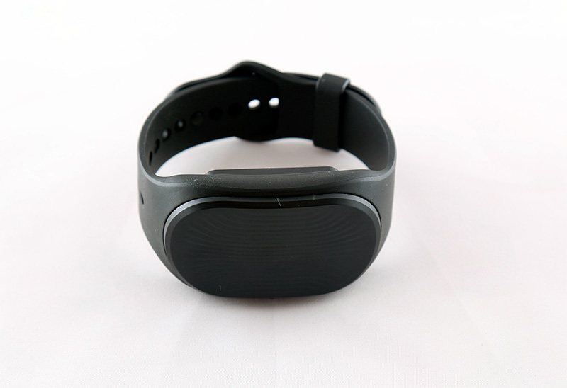 Ремешок из прорезиненного пластика, он несъемный. Защелка ремешка представляет собой пластиковый штырь с головкой, кончик ремешка проходит в специальную прорезь и закрепляется пластиковым фиксатором. Отверстия в ремешке нанесены достаточно часто, браслет можно быстро отрегулировать под свое запястье, учитывая тот факт, что он вообще должен прилегать достаточно плотно.