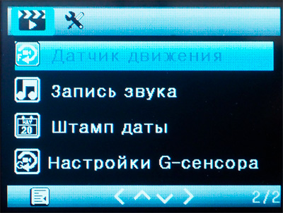 Датчик движения можно использовать на парковке, если видеорегистратор стационарно подключить к аккумулятору. Настройки G-сенсора пригодятся, в случае если видеорегистратор при записи будет реагировать на небольшие ухабы - тогда следует уменьшить чувствительность сенсора.