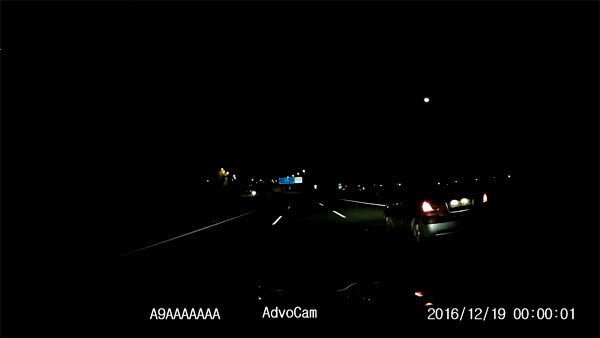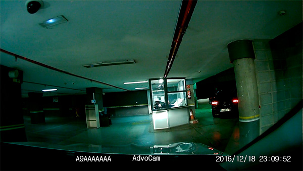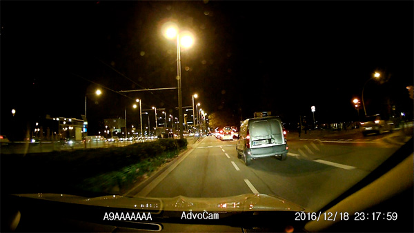 Съемка днем и в сумерках - вполне качественная, а уж ночью - так просто здорово для видеорегистратора такой ценовой категории. У AdvoCam-FD One реально большая матрица, так что качество ночной съемки - очень хорошее, шумов довольно мало, а номера различимы на расстоянии до 10-15 метров. Впрочем, как это происходит с любыми видеорегистраторами, если фары вашей машины ночью напрямую светят в номер другой машины, то номер засвечивается и выглядит белым прямоугольником. Но если фары вашей машины светят под углом - номер сразу становится различим.