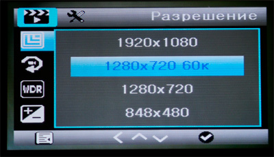 В режиме FullHD съемка идет с качеством 30 кадров в секунду, в режиме 1280×720 можно снимать с качеством 60 кадров в секунду.