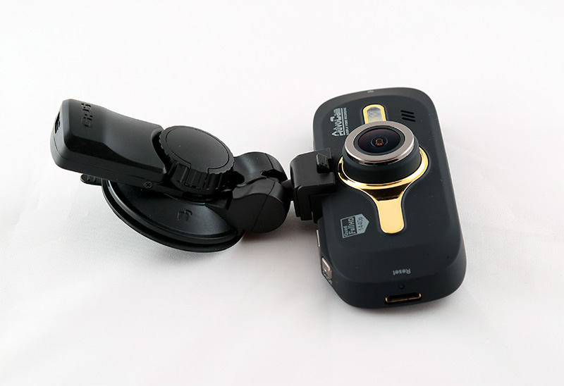 Держатель с присоской. В корпусе держателя встроен модуль GPS-ГЛОНАСС, также в держателе есть порт microUSB для подачи питания на видеорегистратор.