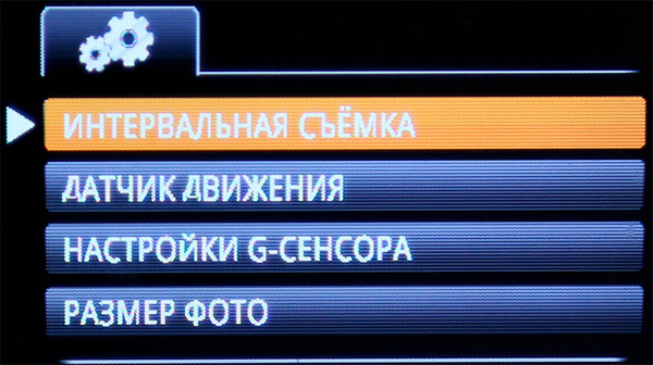 С помощью кнопки "Меню" можно войти в режим просмотра отснятых роликов и фото, повторное нажатие кнопки "Меню" - настройки видеорегистратора.
