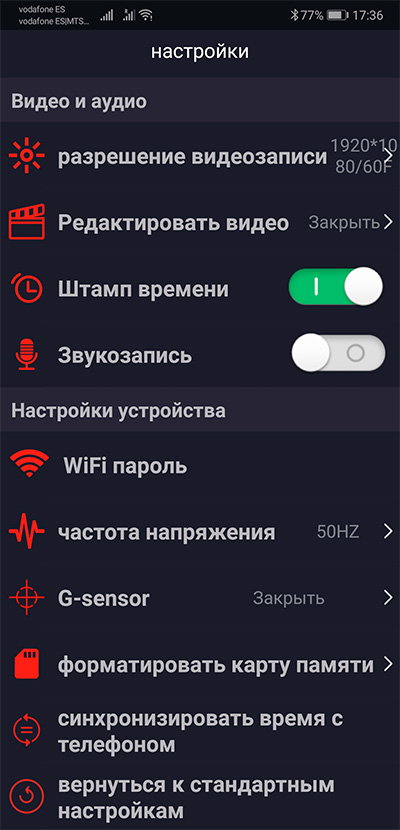 Поэтому здесь сделано хитро. Процессор установлен мощный, и он позволяет снимать видео сразу в двух разрешениях: в одном, которое выставил пользователь, а второй поток видеорегистратор снимает с разрешением 720p (1280х720). И если вам нужно срочно посмотреть ролик на экране смартфона, то вы можете это сделать через специальную программу WiFi-CarDV, которая доступна и для Android, и для iPhone. При этом будет показываться именно версия 720p. Сделано это явно еще и для того, чтобы ничего не тормозило в том числе на бюджетных маломощных смартфонах.