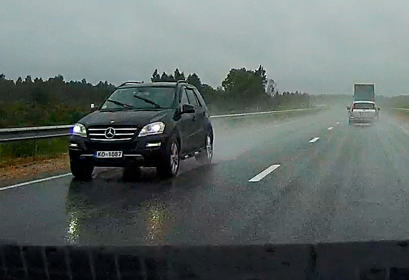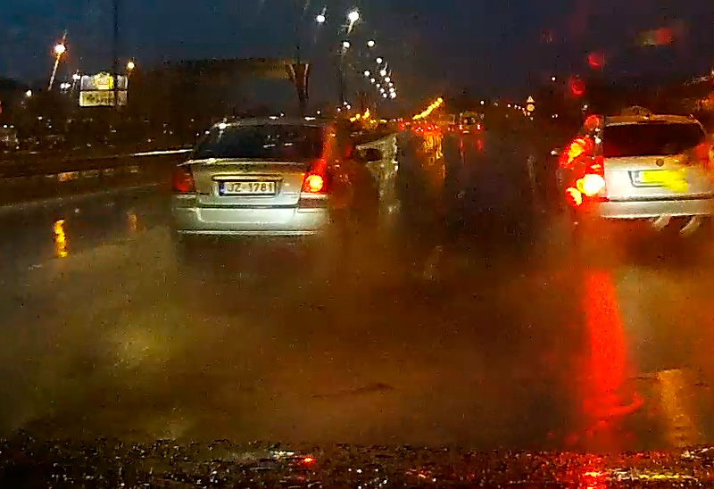 Стоп-кадр. Вот тут, конечно, интересно получилось. Ночь, сильный дождь, быстро работают дворники. Номер машины впереди в том же ряду - засвечивается фарами моей машины. Но номер проезжающей по ряду слева машины вполне можно увидеть.