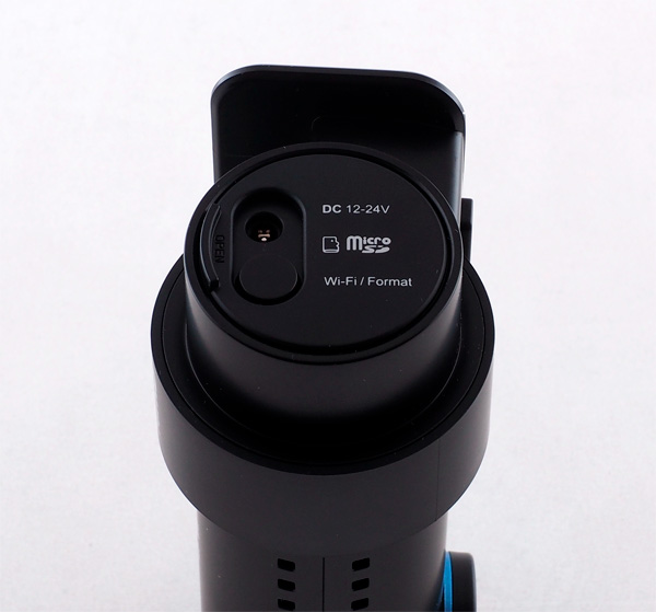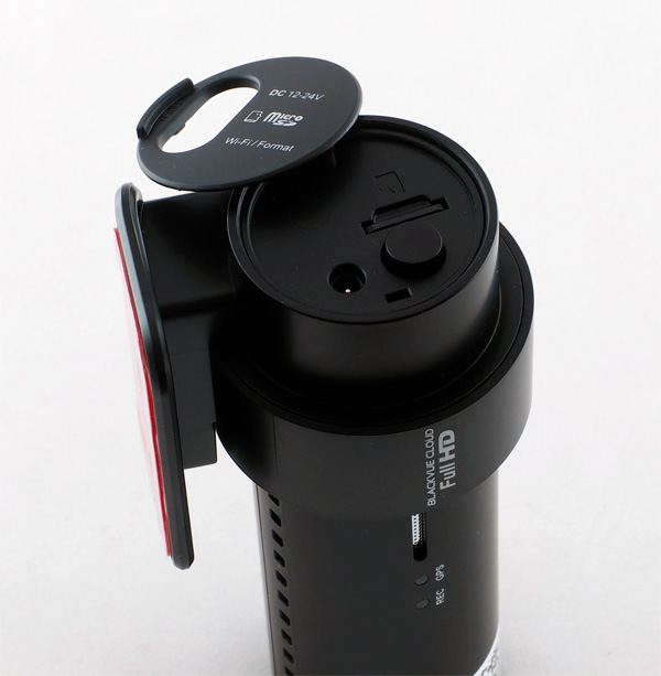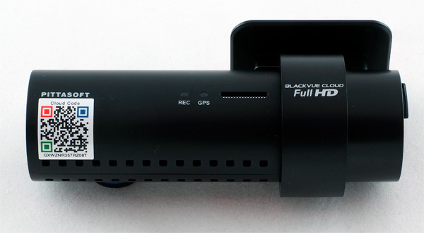 На задней панели - динамик, индикаторы GPS и записи, QR-код для подключения видеорегистратора к облачному сервису. Этот QR-код можно отклеить, но крайне желательно его не потерять, так что лучше и не отклеивать. (Впрочем, если код даже и потеряете, то камеру все равно можно будет подключить, но для этого придется общаться со службой поддержки для получения соответствующего кода.)