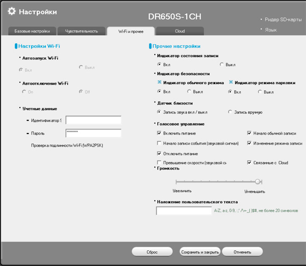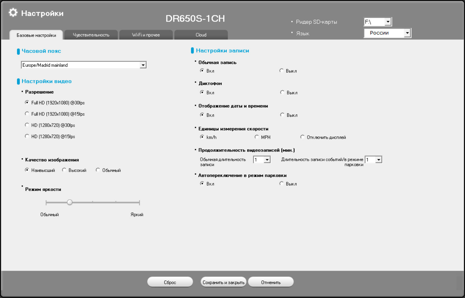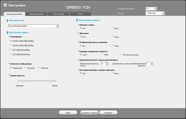 Сделанные настройки сохраняются на карте памяти, и потом, когда карта вставляется в видеорегистратор, устройство при старте считывает эти настройки - это хорошо придумано.