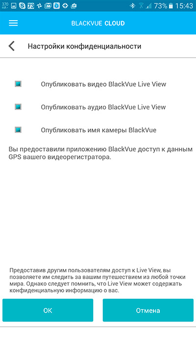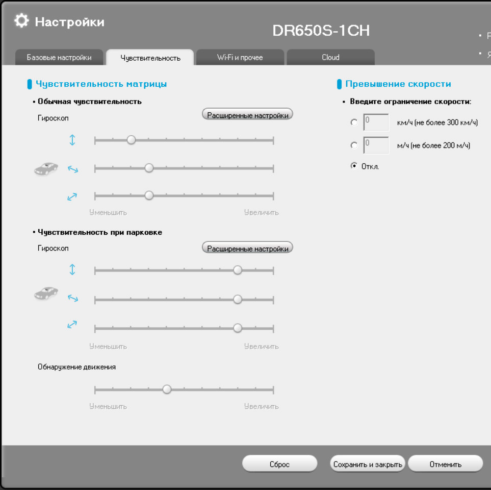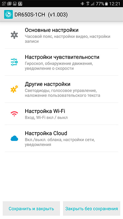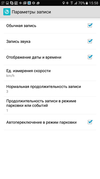 Также в этом разделе приложения можно производить различные настройки видеорегистратора.