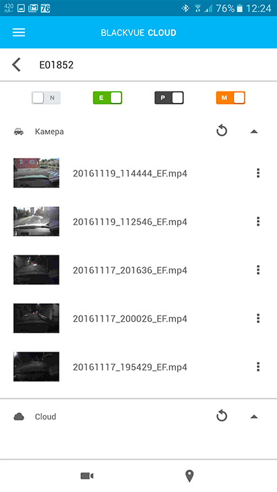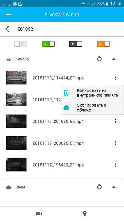 Причем показывают нам как ролики, хранящиеся на карте памяти в видеорегистраторе, так и ролики, хранящиеся в облаке.