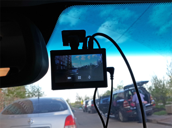 Учитывая тот факт, что экран у передней камеры сенсорный, устанавливать ее нужно так, чтобы водительское зеркало не закрывало доступ к дисплею.