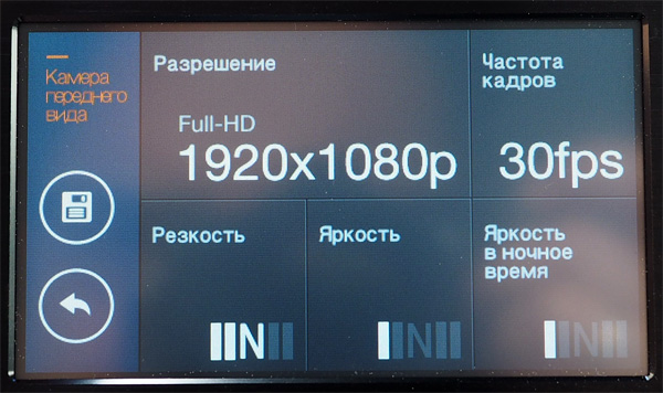 Настройки камер переднего и заднего вида (у них одинаковые возможности). Обратите внимание на то, что тут отдельно еще можно регулировать резкость, яркость и яркость в ночное время.
